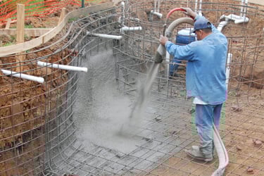 Shotcrete, a mix of concrete and water, is then applied over the steel framework. This method allows for a strong and durable shell, capable of withstanding various pressures and conditions. The shotcrete is sprayed onto the surface and then shaped to form the desired contours of your pool. The 3 day install includes curing time before we move to the finishing stages.